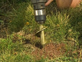 - Determine your starting point and insert the Amazoy Auger in the ground to remove the established grass and make a hole for your zoysia plug.